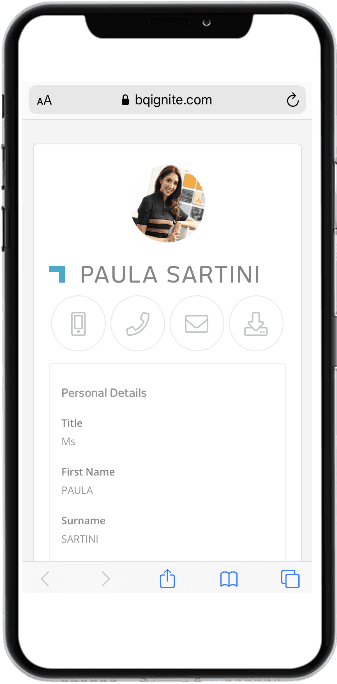 Through BQBrandMe® users can update personal information for which they have permissions for and provide email recipients with additional details such as links to social media platforms, birthdays, qualifications, certifications and more. User information neatly downloads as a full contact business card to the recipient’s chosen device, whether Windows, Android or Mac. Print-ready business cards are a bonus!